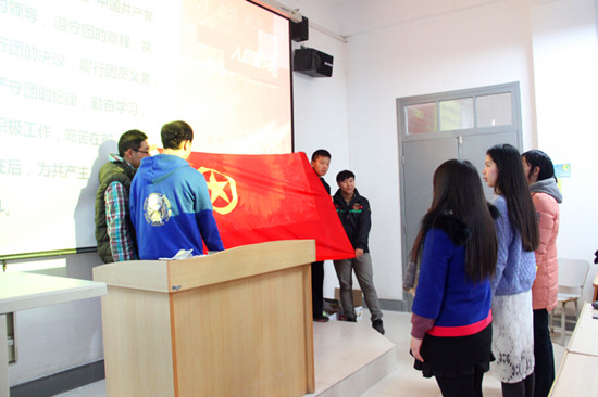 大会开始后,主持人首先介绍了中国共产主义青年团相关知识,使新团员对团有了初步了解。会上,要入团的学生认真宣读了入团申请书,表达了他们对加入共青团的强烈愿望和坚定决心。团委全体干事深受感动,一致举手表决通过了他们的入团申请并现场见证了他们的入团宣誓。新团员代表王婧潼同学在发言中,表明了入团决心以及努力成为有用之才的目标。2014级法学班团支部书记张译之同学向新团员表示祝贺,鼓励他们携手共进,为团旗增辉添彩。大会在激昂的团歌中圆满结束。