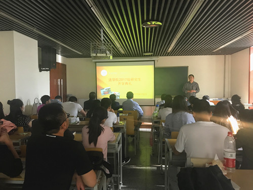 9月12日上午,金沙威尼斯欢乐娱人城在本部校区观云楼703教室举行2017级研究生开学典礼。学院党委书记沙鹏,院长俞树毅教授,副院长吴双全教授、杨发辉,教师代表贾登勋教授、马明贤教授,2017级法学班班主任李志强副教授,以及2017级法学硕士及部分在职法律硕士研究生参加了典礼。典礼由学院党委副书记赵文瑞主持。