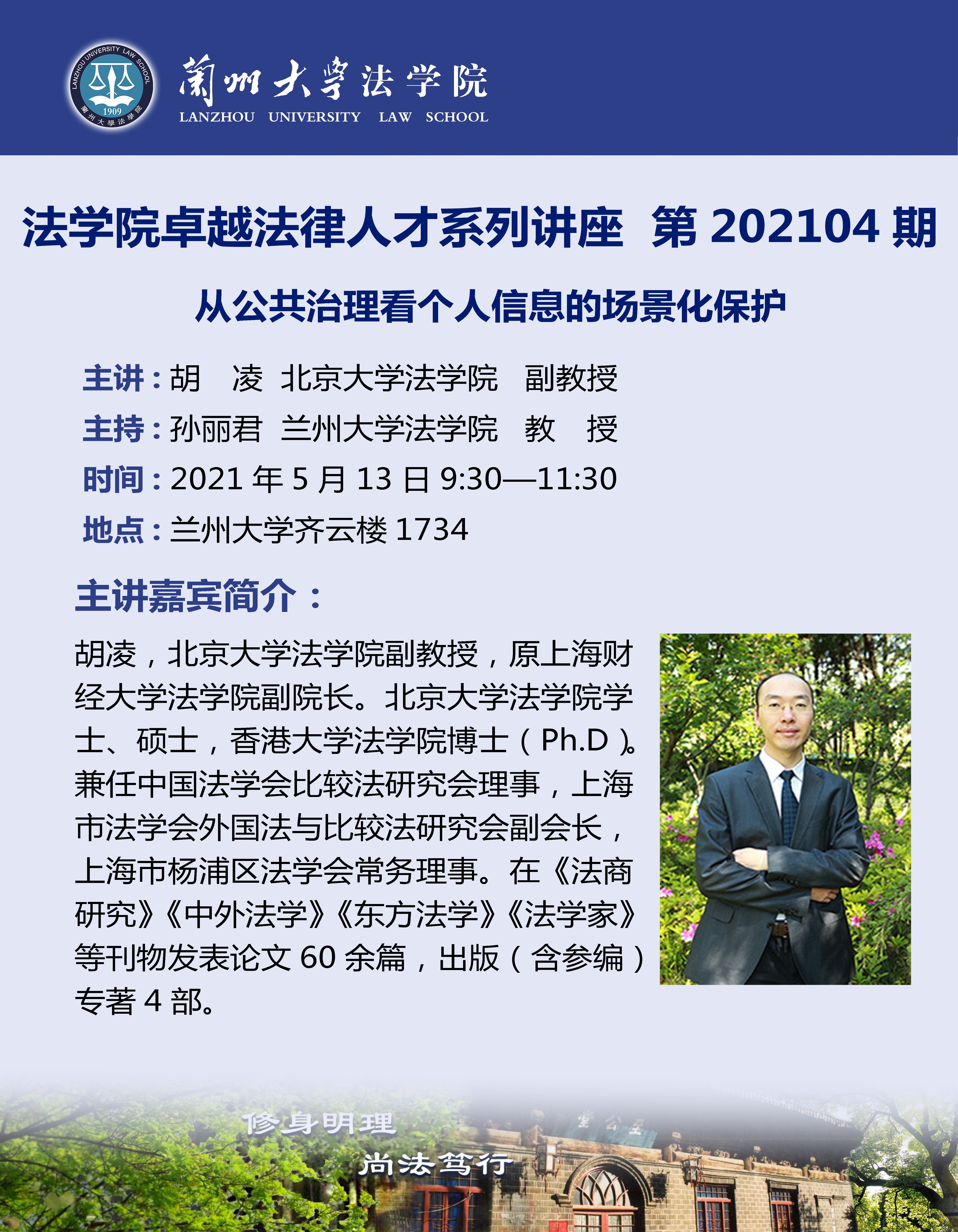 讲座通知:胡凌副教授——从公共治理看个人信息的场景化保护
