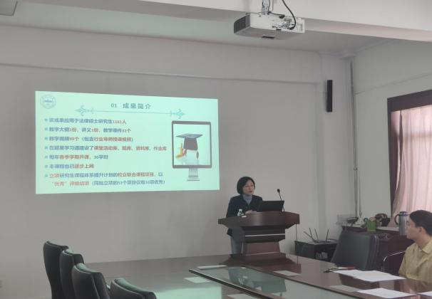 王雅霖汇报了成果《法律硕士校企联合实践课程教学创新的兰大模式》的有关情况,该成果旨在培养学生法律文书写作素养,增强学生的实践应用能力,根据教学实践新情况,应用超星学习通系统开展混合教学,组建校企联合教学团队,该成果立项的研究生课程体系提升计划项目,以“优秀”评级评级结项。