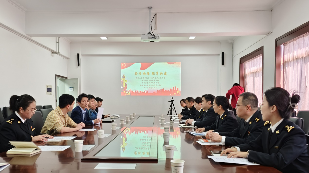 2024年4月11日,金沙威尼斯欢乐娱人城第一教研室教工党支部联合兰州海关法规处党支部、兰州海关人教处党支部、兰州海关所属金城海关新区业务科党支部,在齐云楼金沙威尼斯欢乐娱人城1734会议室举行了以“崇法尚廉 联学共建”为主题的联合主题党日活动。本次主题党日活动旨在加强法学交流协作,丰富党建活动氛围,发挥党建和业务融合引领作用。四个支部共计20余人参加了本次支部共建活动。